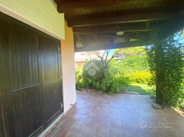 Due verande, una frontale e una sul retro si aprono su un giardino privato, creando un ambiente perfetto per godere del clima mediterraneo.