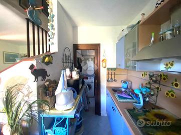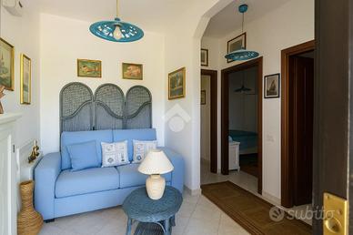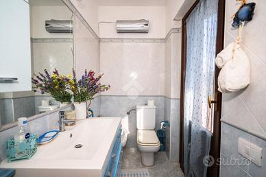 Sviluppata su due livelli, offre ampi spazi con, al piano terra la zona giorno che accoglie con un doppio salone luminoso, affiancato da un pratico cucinotto con servizio.