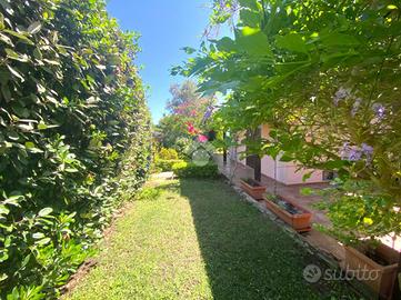Due verande, una frontale e una sul retro si aprono su un giardino privato, creando un ambiente perfetto per godere del clima mediterraneo.