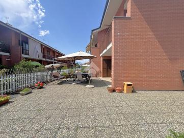 In zona residenziale tranquilla e ben abitata, villa a schiera di testa che garantisce spazio e comfort. Arricchita da un giardino privato e un cortile che circondano i tre lati della proprietà, ideale per momenti di relax all'aperto, giochi con i bambini o cene conviviali con amici.