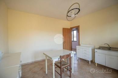 Si accede alla casa dal piano terra dove troviamo un ampio soggiorno, una cucina abitabile con accesso al terrazzo ed un bagno di servizio.