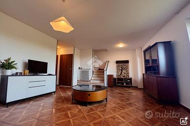 Al primo piano si trovano tre ampie camere da letto, un bagno finestrato con vasca, e un ulteriore ripostiglio adibito a lavanderia. La camera matrimoniale offre l'accesso diretto a una grande terrazza panoramica che abbraccia gran parte del perimetro dell'abitazione, creando uno spazio esterno esclusivo e ideale per momenti di relax.
