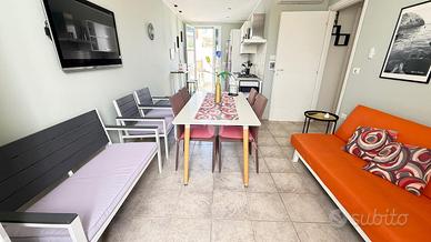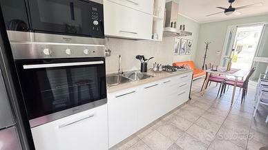 MARINA DI MANCAVERSA: Villa a schiera di recentissima costruzione, a circa 700 Mt dal mare,completamente arreda, climatizzata, composta da ingresso soggiorno, cucina abitabile, due camere da letto matrimoniali e un bagno. Ampio spazio esterno antistante e retrostante con doccia esterna, lavanderia e barbecue. Lastrico solare di esclusiva proprietà.
