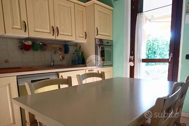 Siamo lieti di presentarvi questa opportunità immobiliare: un quadrilocale di recente costruzione, del 2012. All'interno, vi attende un luminoso soggiorno con camino, ci conduce verso una cucina abitabile, due camere da letto e doppi servizi. Non solo, avrete il privilegio di godere di due giardini, una suggestiva terrazza e un pratico garage.