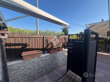 In un contesto tranquillo, all'interno di Via Dei Medici, nel centro residenziale di Borgo Hermada, proponiamo in vendita esclusiva una graziosa villetta a schiera sviluppata su un unico livello con soppalco. L'abitazione si distingue per un ampio spazio esterno completamente pavimentato, ideale per vivere l'aria aperta in ogni stagione, grazie alla presenza di una doccia, un forno in muratura e una pergotenda perfetta per pranzi e momenti di relax con famiglia e amici.