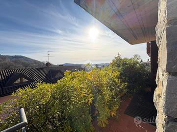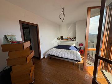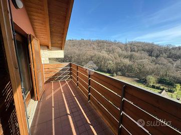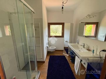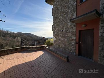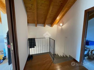 TORRE DE' ROVERI In splendida zona collinare proponiamo in vendita una villetta a schiera di testa, libera su tre lati e con tripla esposizione. L'abitazione, costruita nel 2008, si sviluppa su quattro livelli: al piano interrato si trovano una comoda lavanderia, una taverna, un box doppio in lunghezza e un magazzino; al piano terra la zona giorno è composta da cucina, soggiorno e bagno; al primo piano sono presenti due camere da letto e un bagno, entrambe con balcone; al secondo piano altre due camere e un bagno, anch'esse servite da balcone. La villetta è caratterizzata da esterni in pietra e legno, dispone complessivamente di quattro balconi ed è circondata da un'area esterna esclusiva che la rende particolarmente riservata. La posizione collinare, molto bella e tranquilla, completa questa interessante proposta immobiliare.