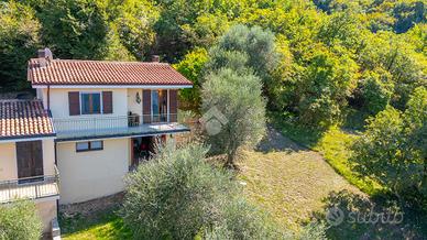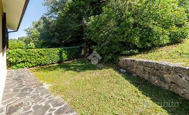 * al piano terra una grande taverna con bagno di servizio. L'accesso alla proprietà avviene tramite un ingresso indipendente che conduce all'ampio giardino privato, luogo perfetto per relax all'aria aperta. La posizione panoramica immersa nel verde, oltre ad una vista lago mozzafiato, garantisce privacy e tranquillità.