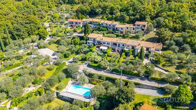 In residence con piscina, situato nella tranquilla prima collina, proponiamo una villetta a schiera angolare con splendida vista lago.