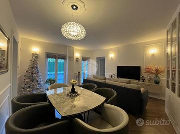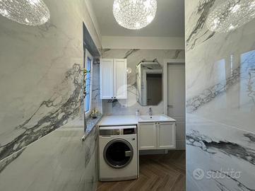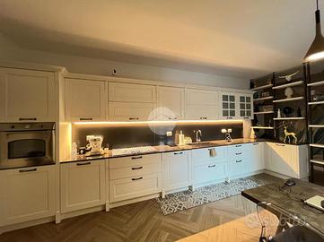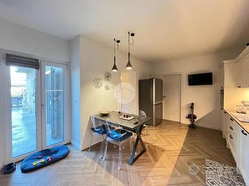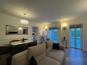 L'ingresso si apre su una luminosa cucina abitabile con uscita diretta sul terrazzo, perfetto per pranzi all'aperto. A seguire, un ampio soggiorno , impreziosito da un camino a bioetanolo.