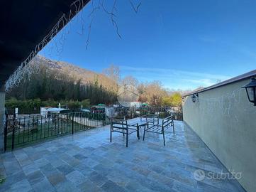 Al primo piano si sviluppa la zona notte, composta da una spaziosa camera matrimoniale, una cameretta con accesso al terrazzo panoramico e un bagno con doccia.