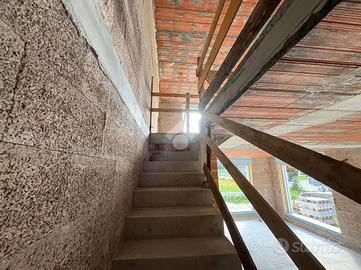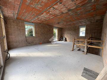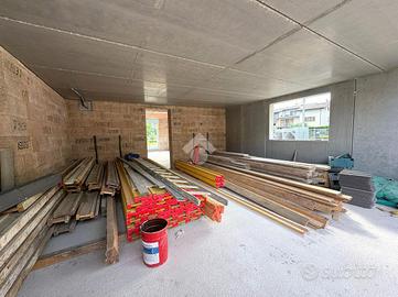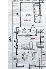 Al piano terra si sviluppa la zona giorno, composta da un ampio soggiorno con cucina a vista per una superficie complessiva di circa 40 mq, con possibilità di suddividere gli spazi in base alle esigenze personali. Sempre al piano terra è presente un bagno finestrato, oltre all'accesso diretto all'autorimessa doppia di circa 33 mq, in grado di ospitare comodamente due autovetture e offrire ulteriore spazio per deposito o scaffalature.