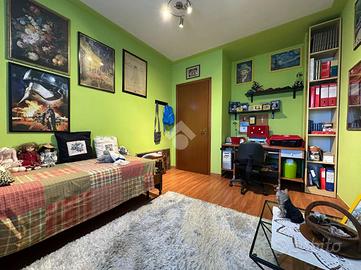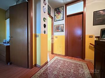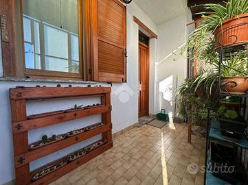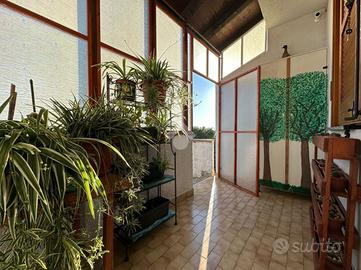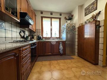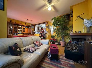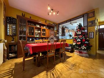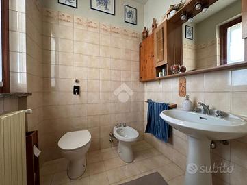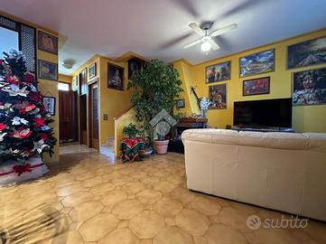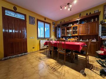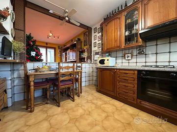 L'abitazione, di 115 mq, si sviluppa al piano rialzato e al piano primo. L'ingresso si apre sulla zona giorno, composta da un ampio soggiorno con camino, cucina abitabile e bagno di servizio. La zona notte si trova al piano primo, suddiviso in disimpegno, tre camere da letto e bagno con doccia.