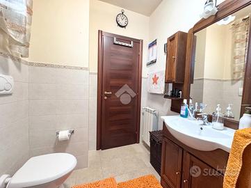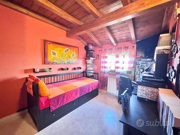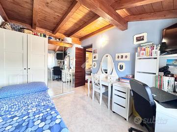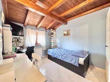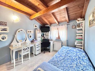 Salendo la scala, si accede alla zona notte, dove troviamo una spaziosa camera matrimoniale con balcone privato, un vero angolo di pace e tranquillità. Due luminose camerette, perfette per i bambini o per gli ospiti, offrono spazi confortevoli e personalizzabili. Un bagno finestrato con vasca, ideale per concedersi momenti di relax dopo una lunga giornata, e un pratico ripostiglio completano il piano superiore.