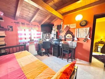 Salendo la scala, si accede alla zona notte, dove troviamo una spaziosa camera matrimoniale con balcone privato, un vero angolo di pace e tranquillità. Due luminose camerette, perfette per i bambini o per gli ospiti, offrono spazi confortevoli e personalizzabili. Un bagno finestrato con vasca, ideale per concedersi momenti di relax dopo una lunga giornata, e un pratico ripostiglio completano il piano superiore.