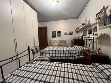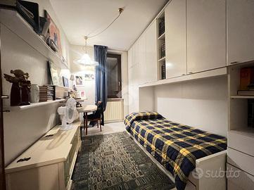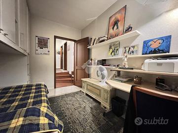 Salendo al primo piano, la zona notte comprende tre camere da letto: una matrimoniale, una doppia con balcone e una singola, ideali per famiglie o per chi necessita di uno spazio studio o ospiti. Completa il piano un bagno finestrato con vasca, comodo e luminoso.