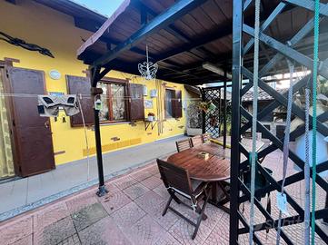 La soluzione si presenta al piano terra con l'ingresso sul soggiorno con la cucinotta a vista, la camera da letto ed il bagno accessoriato di doccia. L'ambiente zona giorno ha lo sfogo sul giardino e sul patio esterno dove vi è un elegante gazebo ed il forno a legna per passare ottime serate in relax.