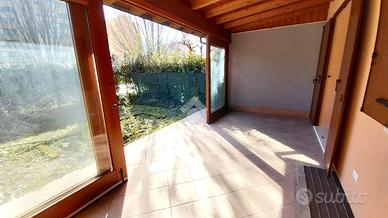 Piano Primo: Salendo al primo piano si apre una zona giorno inondata di luce. L'ampio soggiorno si affaccia su una spaziosa cucina abitabile con balcone. Il vero fiore all'occhiello è la veranda coperta con serramenti a scorrimento: uno spazio versatile che funge da ponte verso il secondo giardinetto, perfetto per pranzi all'aperto o per godersi il verde in totale privacy.