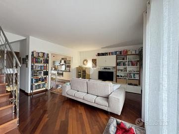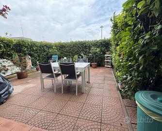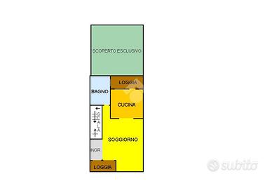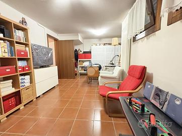 Accediamo dall'ingresso in un ampio soggiorno luminoso di circa 26 mq, collegato direttamente alla cucina separata e abitabile di 12 mq, con uscita sullo scoperto esclusivo di circa 37 mq. A seguire il bagno finestrato con doccia.