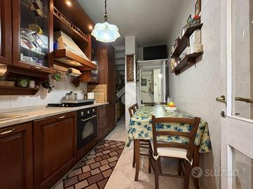 Accediamo dall'ingresso al piano terra, composto da: un luminoso soggiorno di 18 mq collegato ad una veranda di 6 mq con uscita sul cortile esclusivo di 28 mq, una cucina separata ed abitabile di circa 10 mq che garantisce privacy agli ambienti, una camera singola di circa 11 mq ideale come studio o stanza per gli ospiti ed infine una piccola lavanderia.