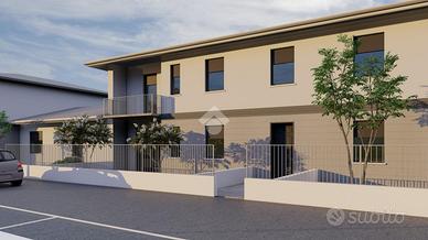 Villa a schiera di NUOVA COSTRUZIONE a Villachiara, progettata con particolare attenzione all'efficienza energetica e al comfort abitativo, classificata in classe energetica A1. Questa abitazione si distingue per l'uso di tecnologie moderne e materiali di alta qualità, tra cui il cappotto isolante di 14 cm che offre una perfetta coibentazione termica, garantendo ambienti freschi d'estate e caldi d'inverno, con un notevole risparmio sui consumi energetici. Il riscaldamento a pavimento contribuisce a un'efficienza ottimale, mentre i serramenti in PVC di ultima generazione assicurano un ottimo isolamento acustico e termico. Inoltre, l'impianto fotovoltaico da 4,2 kW supporta la produzione di energia pulita e riduce ulteriormente i costi legati al consumo energetico. La villa si sviluppa su due piani fuori terra, offrendo una distribuzione degli spazi funzionale e moderna. Al piano terra, un ampio soggiorno open space di 37 mq accoglie gli ospiti con un'atmosfera luminosa e spaziosa, grazie alla grande finestra che si affaccia sul portico posto sul retro della casa. Questo spazio è ideale per vivere momenti di relax e convivialità, con la possibilità di godere dell'area esterna. Sempre al piano terra si trovano una lavanderia/bagno, comoda e pratica per le necessità quotidiane, e un box auto di 25 mq, ampio e versatile, che offre sufficiente spazio per una vettura e ulteriore spazio di deposito. Il piano primo è dedicato alla zona notte, che si compone di due ampie camere matrimoniali, una camera singola, un secondo bagno e un pratico ripostiglio. Le camere sono spaziose e ben illuminate, ideali per garantire il massimo del relax e del comfort. Ogni dettaglio è stato pensato per ottimizzare gli spazi e favorire un ambiente tranquillo e accogliente. Un altro punto di forza della villa è rappresentato dai due loggiati con parapetto in vetro, situati uno sul fronte e l'altro sul retro che con Il giardino sul retro offrono uno spazio ideale per trascorrere il tempo liber...