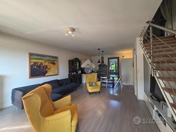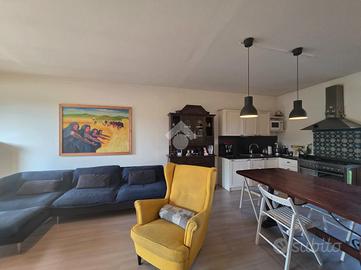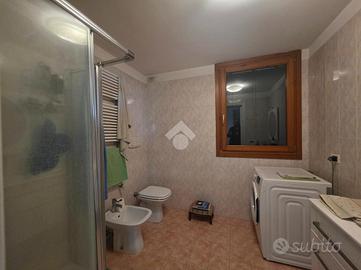 Ingresso nel soggiorno con cucina a vista, un bagno finestrato con doccia, ripostiglio con centrale termica e garage singolo di circa 20mq dal quale si può accedere sia internamente sia esternamente.