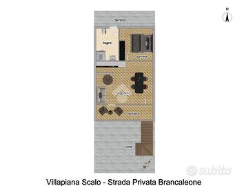 Villapiana Scalo - Strada Privata Brancaleone. A soli 200m dal mare, proponiamo in vendita villa a schiera, sviluppata su due livelli, perfetta sia come casa per le vacanze ma anche come abitazione principale, per chi sogna di vivere tutto l'anno con il profumo del mare. La proprietà ci accoglie con una corte privata, ideale sia come posto auto che come spazio in cui trascorrere piacevoli serate in compagnia. E' inoltre presente una doccia esterna, ottima per il rientro dalla spiaggia. Attraverso una scala esterna si accede al primo piano, dove veniamo accolti da un terrazzo comodo, perfetto per colazioni all'esterno. L'ingresso si apre su un luminoso soggiorno con angolo cottura, e la zona notte del piano ospita una camera matrimoniale con bagno privato e accesso diretto a un secondo terrazzo. Una scala interna conduce al piano superiore, dove si sviluppano due camere e un bagno. La soluzione è in ottime condizioni, sia interne che esterne, e gode di molti comfort.
