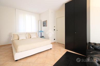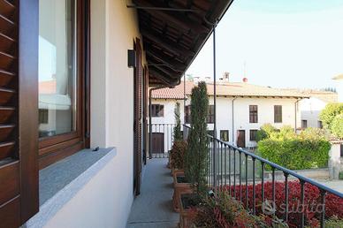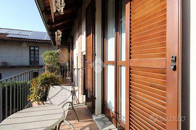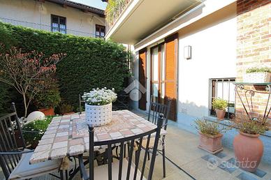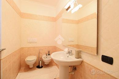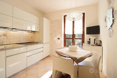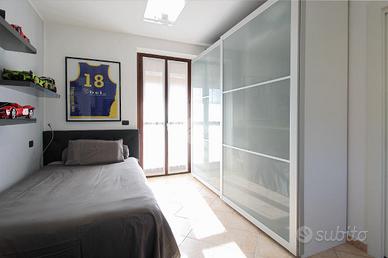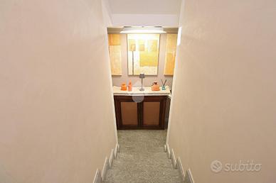 L'uscita diretta verso l'area esterna privata - riservata e protetta - consente di godere appieno degli spazi all'aperto, valorizzati dalla presenza di una tenda da sole motorizzata recentemente sostituita.
