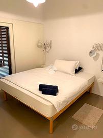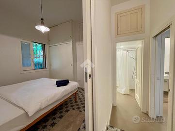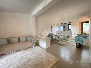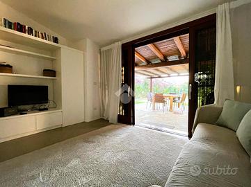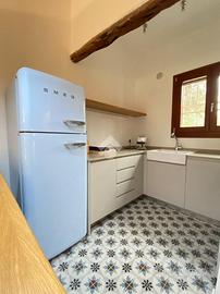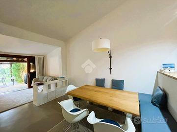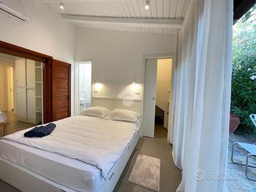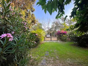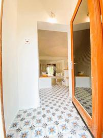 La casa è stata integralmente ristrutturata con particolare attenzione alla scelta dei materiali ed alla qualità nella realizzazione ed è dotata di climatizzatori di recente installazione. Offre degli ambienti luminosi, accoglienti e funzionali ed è completa di arredi di alta qualità realizzati su misura. Il giardino ben curato è dotato di impianto di irrigazione. La casa si sviluppa su un unico livello, all' ingresso una comoda sala pranzo-soggiorno separata dall'angolo cottura da qualche gradino; disimpegnata la zona notte composta da due camere matrimoniali di cui una con bagno padronale ed un secondo bagno completo; un terzo ambiente-camera dotato di servizio è stato realizzato per offrire un rilassante soggiorno ad eventuali ospiti, in effetti così organizzata la casa riesce ad ospitare comodamente sei persone; All' uscita dalla sala un ampio loggiato che affaccia sul giardino privato e sul lato una comoda scala esterna ci conduce al terrazzo sovrastante da cui si può apprezzare una gradevole vista sul mare.