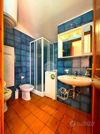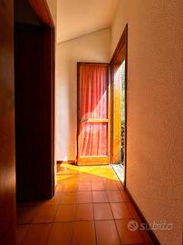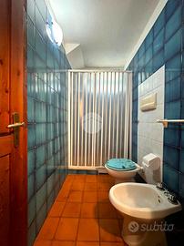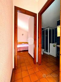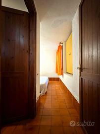 Qualche gradino a scendere rispetto a questa zona e, separati da un comodo disimpegno, si trovano una camera da letto, un bagno finestrato con doccia e un piccolo ripostiglio sottoscala. Qualche gradino a salire rispetto alla zona giorno e si trova la seconda ala dell'immobile formata dalla seconda camera da letto e dal secondo bagno sempre completo di doccia.