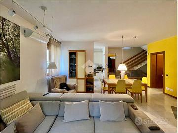 Campagnola - Villetta a schiera con ingresso indipendente e area esterna privata In tranquilla e curata zona residenziale, con traffico veicolare limitato, proponiamo villetta a schiera edificata a metà degli anni '90, inserita in un contesto riservato di sole 4 unità abitative. L'abitazione è dotata di ingresso carraio e pedonale indipendenti, di riscaldamento autonomo e di una comoda area scoperta di proprietà, ideale per momenti di relax, pranzi e cene all'aperto o per chi ama gli spazi esterni. Al piano terra si sviluppa un'ampia zona giorno, composta da soggiorno e cucina a vista, parzialmente separati da una parete, oltre a un bagno di servizio. Il piano primo ospita due spaziose camere matrimoniali, un bagno principale finestrato e un balcone coperto, ideale come sfogo esterno utilizzabile in ogni stagione. Completa la proprietà un ampio box auto al piano interrato, utilizzabile non solo come garage ma anche come spazio deposito/magazzino, ideale per biciclette, attrezzature o hobby. L'immobile è stato oggetto di importanti interventi di miglioramento nell'ultimo decennio, tra cui l'installazione di una caldaia a condensazione, di un impianto fotovoltaico da 6 kW con batteria di accumulo da 10 kW, di una stufa a pellet e di un impianto di climatizzazione, elementi che contribuiscono a garantire elevati livelli di comfort abitativo ed efficienza energetica. La posizione è particolarmente adatta a famiglie, grazie alla presenza di un parco giochi nelle immediate vicinanze. Soluzione ideale per chi desidera indipendenza, tranquillità ed efficienza energetica, in un contesto riservato e ben servito.