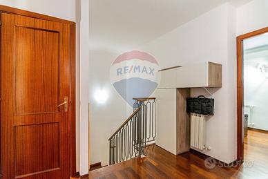 Il primo piano, caratterizzato dal parquet, offre una vista dominante sul paesaggio circostante. È presente una cucina abitabile con balcone verandato adibito a lavanderia, una camera da letto con balcone panoramico, un salotto con affaccio interno, una stanzetta e un elegante bagno di rappresentanza, creando un livello versatile e ricco di spazi funzionali.