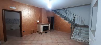 Vendesi villa a schiera disposta su 2 piani in buono stato, libera ed abitabile da subito. L'impianto elettrico e quello idrico, le porte interne e i pavimenti sono stati sostituiti da una decina d'anni. Infissi in alluminio con doppio vetro e scuretti. Caldaia a metano. Dal terrazzino del piano rialzato, a cui si accede tramite 3 gradini dal livello della strada, si entra in uno spazioso soggiorno di circa 20 Mq., dove troviamo anche il termo camino collegato sui termosifoni, uno sgabuzzino sottoscala e la scala che porta al piano superiore, mentre a sinistra troviamo la cucina abitabile circa 25 Mq. Al primo piano troviamo: 1 camera da letto matrimoniale di circa 20Mq. con accesso al terrazzo, l'altra doppia di circa 15 Mq. e il bagno finestrato con doccia 8 Mq. Sul lato destro della casa, vi è un cancello dove al suo interno vi è uno spazio lastricato in cemento di proprietà di 24 Mq. circa dove poter parcheggiare e da cui si accede al garage di 14 Mq. Nella parte posteriore della casa e contigui, a cui si può accedere sia dalla cucina e sia dal garage, troviamo un piccolo cortile di proprietà esclusiva dal quale si accede: ad un locale adibito a cantina 14 Mq., al 2° bagno con finestrino 3,5 Mq. e a un deposito legna/attrezzi di 16 Mq. che è collegato al garage. Prezzo trattabile, no perditempo.