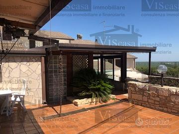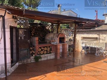 Rif.800/AC In residence recintato con cancello elettrico, villa a schiera su due livelli di complessivi 80 mq con giardino di 100 mq circa, in parte pavimentato e coperto. Caminetto, forno esterno, climatizzata, doppi servizi. Classe energetica G.