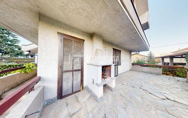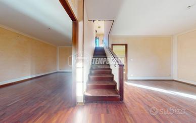 Al piano terra, varcato il portone d'ingresso, si viene accolti in un luminoso atrio che conduce a un ampio soggiorno. Caratterizzato da grandi finestre che offrono una vista sul giardino, il soggiorno è il cuore della casa, perfetto per momenti di relax e convivialità. Gli spazi sono ben definiti, con aree dedicate a zone salotto e pranzo. La cucina, separata e funzionale, è dotata di moderne attrezzature e ampi piani di lavoro, ideale per chi ama cucinare e intrattenere gli ospiti. Completa il piano un elegante bagno di cortesia, rifinito con materiali di alta qualità. Una porta finestra si apre su un ampio terrazzo, ideale per colazioni all'aperto o cene estive, che si affaccia su un giardino privato ben curato, perfetto per bambini e animali domestici.
