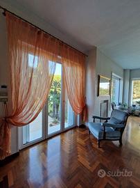 VERDE GIADA: in esclusivo complesso di sole quattro unità abitative, si propone splendida villa a schiera con doppio ingresso, sviluppata su 3 livelli e su una superficie complessiva di ben 230 mq. Dal primo dei due ingressi si accede al piano seminterrato con taverna di 70 mq, zona lavanderia e ripostiglio. Il secondo accesso si trova al piano rialzato, di 70 mq, che ospita la zona giorno, molto luminosa grazie ad una grande vetrata che offre una suggestiva vista sull'intero giardino e dove si trova la cucina abitabile ed un bagno. Al 1° piano la zona notte, costituita da 3 comode camere da letto, due bagni, una cabina armadio ed una veranda di 10 mq. L'integrale ristrutturazione del 2025 ha riguardato anche la facciata ed i bagni e l'installazione dell'impianto fotovoltaico e del solare termico, tant'è che all'abitazione è assegnata la classe energetica A3, godendo di una altissima efficienza . Il rigoglioso giardino di 700 mq, dove trascorrere momenti di relax con famiglia ed amici, dispone di impianto di irrigazione, gazebo, arredi e vano attrezzi. Completa la proprietà un box e un posto auto scoperto.