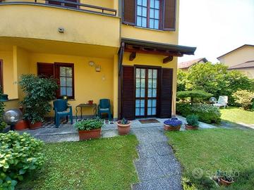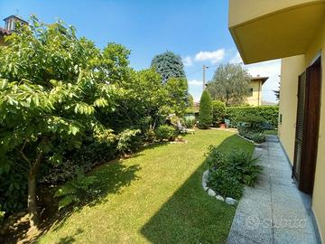 VENDO, grande e solatia villa a schiera di testa con giardino finemente piantumato di circa 300 mq. Ubicata in zona residenziale molto tranquilla. Disposta su 4 livelli di circa 75 mq lordi per piano e 2 box affiancati. La residenza è dei primi anni 80 ma ristrutturata completamente a metà ani '90 con impianto di climatizzazione nelle 3 stanze (di cui 2 matrimoniali) al 2° piano e nel soggiorno. Completa la soluzione una mansarda open space di circa 75 mq. La villa è dotata anche di impianto centralizzato di aspirazione oltre che di taverna (circa 40 mq) con camino e doppia cucina oltre che a locale lavanderia di circa 20 mq.