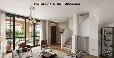 Rif: 2052 Classe energetica: F - EPglnr: 159.91 kWh/m² L'unità abitativa, di fine anni '90, si trova all'interno del Villaggio Rovido a Buccinasco. Il complesso, completamente recintato e con servizio di guardiania diurno, si presenta in ottimo stato, molto curato e comprende diversi condomini composti da ville indipendenti, villette a schiera e appartamenti tradizionali. LE PRIME TRE FOTOGRAFIE DEL PRESENTE ANNUNCIO NON SI RIFERISCONO ALLO STATO DI FATTO DELL'IMMOBILE. L'unità immobiliare in vendita si presenta in stato originale, ideale per chi cerca un'appartamento da personalizzare secondo i propri gusti. La superficie interna si sviluppa su tre livelli oltre il piano sottotetto, ad oggi senza permanenza di persone. Al piano terra si trova la zona giorno con ampio soggiorno con camino, cucina abitabile e un bagno/lavanderia; tramite comoda scala si accede al piano superiore dove si sviluppa la zona notte composta da tre camere e il bagno padronale. Il piano interrato si accede tramite la medesima scala, ed è suddiviso da un'ampia taverna/locale hobby con accesso al giardino alle spalle della proprietà, una cantina e un comodo box doppio. Al piano sottotetto si accede tramite una botola interna, non è abitabile, ma si presenta in buono stato con le stesse finiture dei piani sottostanti e la presenza di due velux. Esternamente, l'abitazione ha due piccoli giardini privati e due ampi terrazzi, uno al piano terra con accesso dalla cucina, il secondo al primo piano con accesso dalla camera matrimoniale. Oltre al box doppio, completa la soluzione un posto auto scoperto di proprietà. Box e posto auto compreso nel prezzo. Richiesta economica: Euro 449.000,00 Spese condominiali: Euro 1.500,00/anno Mediazione: 4% + IVA