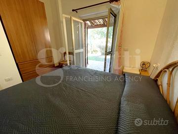 A soli 150 metri dalla spiaggia, circondata dal verde e dalla tranquillità della pineta di Matta 'e Peru, proponiamo in vendita villetta bilocale con giardino privato.