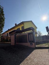 Scopri questa splendida villetta laterale su tre piani, perfetta per chi cerca spazio e comodità. Al piano terra, un accogliente soggiorno e una cucina abitabile si affacciano su un cortile con giardino, ideale per godere di momenti di relax all'aperto. La pavimentazione piastrellata su due lati rende questo spazio facilmente gestibile e perfetto per le cene estive. Salendo al primo piano, troverai due camerette, una camera matrimoniale e un bagno con vasca, il tutto arricchito da tre balconi che offrono una vista incantevole. Ogni ambiente è pensato per garantire il massimo del comfort e della funzionalità. Il piano interrato è una vera gemma: una taverna accogliente con lavanderia e un box doppio, perfetto per riporre tutto ciò di cui hai bisogno. La villetta è dotata di aria condizionata e riscaldamento a pompa di calore, assicurando un clima ideale in ogni stagione. Con finestre in noce nazionale e predisposizione per camino o stufa a idro pellet, ogni dettaglio è curato per il tuo benessere. Situata in una zona tranquilla, questa villetta offre anche connessione internet fibra massima potenza 1 Gbit al secondo, perfetta per chi lavora da casa. Non perdere l'occasione di visitare questa proprietà in buono stato, costruita nel 2004 e con classe energetica D. Contattaci per maggiori informazioni e per prenotare una visita!