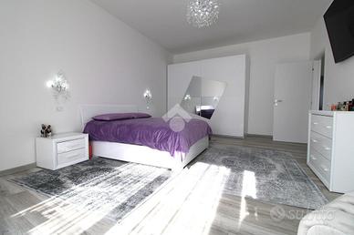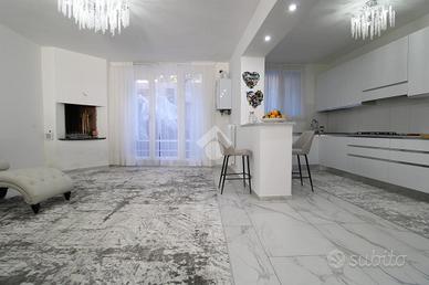 La cucina, moderna e funzionale, si integra perfettamente nello spazio living creando un ambiente conviviale e raffinato, ideale per ricevere ospiti. Il tutto valorizzato da pavimentazione in gres porcellanato effetto marmo, che dona continuità ed eleganza a tutta la casa.