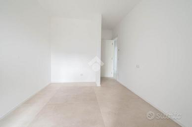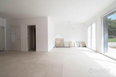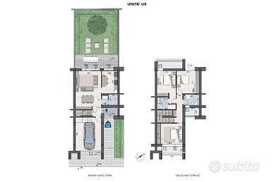 L'abitazione si sviluppa su soli 2 piani. Al piano terra si sviluppa una ampia zona giorno open-space con affaccio sul giardino privato, bagno di servizio e garage di 24 mq. con possibilità di ricarica per veicoli elettrici. Al piano primo la zona notte è composta di 3 camere da letto matrimoniali, 2 bagni e 2 balconi.