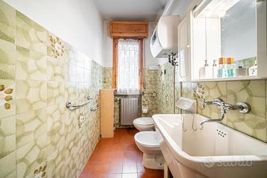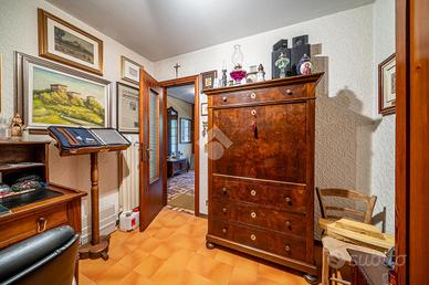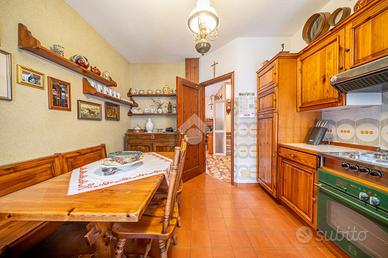 Salendo al primo piano, ci accoglie un luminoso soggiorno dotato di camino, perfetto per trascorrere piacevoli serate in famiglia. Da qui, si accede a un balcone che offre una vista panoramica sulle colline circostanti, un vero angolo di relax. La cucina abitabile, ampia e ben strutturata, si affaccia su un giardino privato, ideale per pranzi all'aperto e momenti di convivialità. Completa il piano un bagno funzionale.