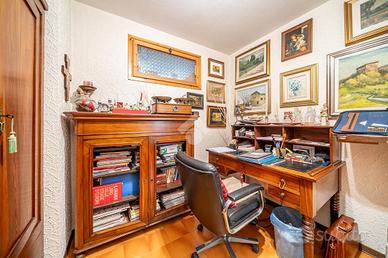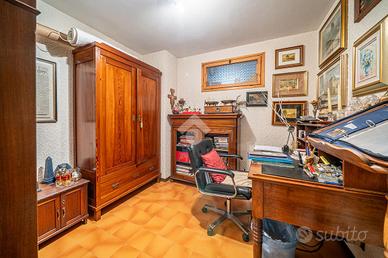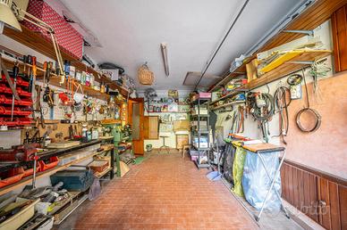 Al piano terra, l'ingresso si apre su un accogliente disimpegno che conduce a diversi ambienti pratici e funzionali: troviamo infatti un comodo studio, un garage e una cantina, oltre ai bassi servizi.