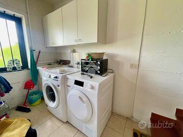 Completa la proprietà un piano seminterrato con taverna adibita a garage, zona lavanderia e due posti auto privati.