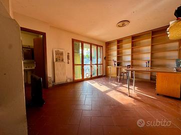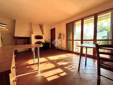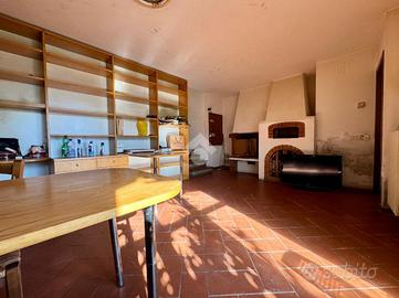 Al piano seminterrato, ripostiglio finestrato ad uso lavanderia, gargae e taverna con camino, forno a legna e bagno, completa accesso al giardino.