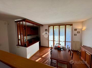 In zona residenziale, proponiamo villetta a schiera centrale con giardino e garage.