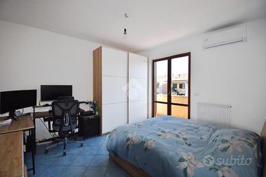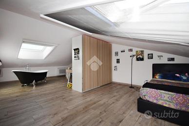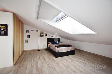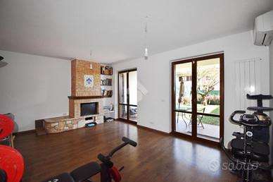 SAN GIOVANNI - Il complesso 'arcobaleno' nasce in una zona tranquilla e soleggiata, lontana dal traffico cittadino. La villetta a schiera è disposta su più livelli e presenta un giardino privato di circa 60 mq, delimitato da alte siepi, per garantire tutta la privacy necessaria e dove poter trascorrere piacevoli momenti all'aria aperta. All'ingresso del piano terra, si viene accolti da un ampio e luminoso salone con camino in muratura, ideale per ospitare amici e parenti. Accanto si trova una cucina funzionale e ben distribuita, perfetta per la vita quotidiana. Primo bagno finestrato di servizio. Salendo al primo piano, tramite scalinata interna, si accede alla zona notte, composta dalle tre camere da letto di cui una matrimoniale spaziosa e due camere più piccole ad uso singolo. Secondo bagno finestrato dotato sia di vasca sia di doccia. Collegata internamente all'abitazione principale, la mansarda rappresenta uno spazio aggiuntivo dal fascino unico, caratterizzato da ambienti intimi e suggestivi. Gli abbaini garantiscono un'ottima illuminazione naturale e una piacevole ventilazione degli spazi. Questo ambiente può essere utilizzato come zona hobby o addirittura come quarta camera da letto, se necessario. Altro bagno dedicato, funzionale e ben integrato, che rende questo spazio completamente indipendente. Nel piano interrato sono presenti due cantine, un locale lavanderia e un box auto singolo, accessibile tramite rampa esterna.