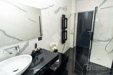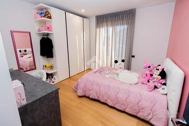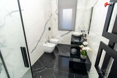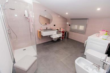 Il piano superiore ospita la zona notte, composta da tre camere da letto, tutte arredabili a matrimoniali, di cui due con affaccio su un comodo terrazzo vivibile. I bagni del piano sono due, entrambi finestrati e con doccia, completi di eleganti termo arredi di design. Da questo piano, tramite una botola con scala a sfilo totalmente motorizzata e di ultima generazione, è possibile accedere al sottotetto completamente piastrellato e intonacato, reso luminoso da un velux. Il piano seminterrato ospita la tavernetta, il locale caldaia e il locale lavanderia. La villa rappresenta una combinazione di eleganza, lusso e modernità ed è arricchita da diversi comfort che la rendono unica nel suo genere. Sono presenti sei condizionatori Mitsubishi (caldo/freddo), le porte filomuro sono 'Laccate Garofali' impr..