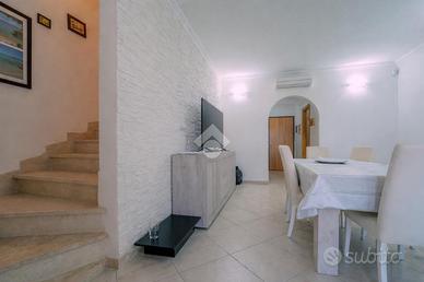 Olbia - Via Eraclito - In uno dei quartieri più rinomati della città, a pochi passi da tutti i servizi che la zona di Viale Aldo Moro offre Le villette a schiera di Borgo delle Rose, caratterizzate da una posizione collinare e la totale indipendenza della tipologia, sono state realizzate dopo il 2008 e rappresentano oggi una soluzione abitativa ideale per una famiglia con bambini. L'ingresso apre sul giardino frontale, spazio ideale dove parcheggiare la propria auto all'interno della proprietà. Da qui si accede alla sala da pranzo luminosa, grazie all'affaccio sul terrazzo a livello, un angolo verde riservato valorizzato da un porticato in legno, che permette di sfruttare l'esterno per mangiare all'aperto o per godere delle piacevoli giornate che il nostro clima offre quasi tutto l'anno. La cucina separata permette di mantenere i due ambienti al piano terra riservati, grazie alla comoda zona cottura disposta ad angolo, dotata di ampio piano di lavoro. A completare il piano terra un bagno finestrato con doccia ed un comodo ripostiglio nel sottoscala. Al piano superiore, accessibile da scala interna rifinita in marmo di Orosei, è invece presente la zona notte dove la camera matrimoniale gode di una splendida vista sulla città di Olbia, grazie alla favorevole posizione collinare nella quale è inserita questa villetta, nel punto più alto del complesso. La seconda camera è comoda ed arredata con un letto a ponte e dotata di due posti letto ha una finestra con affaccio sull'ingresso principale. Completa il piano un secondo bagno finestrato con vasca ed un ripostiglio posto sul vano scala, spazio utile dove riporre gli oggetti della casa. Questa soluzione è ideale per chi desidera una prima casa in ottime condizioni di manutenzione o per chi è alla ricerca di una soluzione da mettere a reddito in modo continuativo con contratti a lungo periodo. Si precisa inoltre che è in essere un contratto di locazione standard sino a fine 2026.