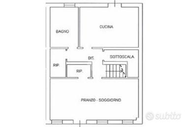 Entrando nella soluzione troviamo, al piano terra ingresso su soggiorno con camino, ripostiglio, disimpegno, sottoscala, cucina e bagno con doccia.